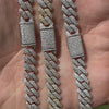 Our  handmade Moissanite Miami Cuban link chain , crafted in Italy from solid 925 sterling silver with your choice of high end finishes. Available in natural silver , 14k yellow gold vermeil links, 14k rose gold vermeil links, or black rhodium, this chain is iced with VVS clarity, D Color moissanite stones that are visually better than natural diamonds.
